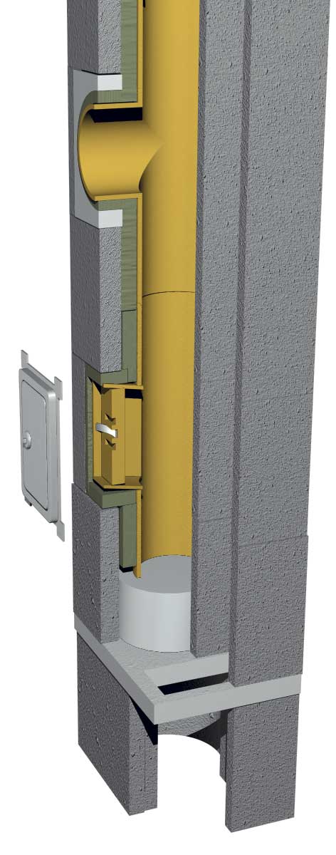 Raumluftunabhängiges Schornsteinsystem, dreischalig mit angeformten Luftschacht. Der dreischalige Aufbau des Schornsteinsystems mit korrosionsfreiem Schamotterohr, nicht brennbarer Mineralwolldämmung und Leichtbeton-Mantelstein bietet ein Höchstmaß an Sicherheit.